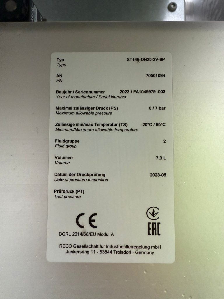 mit Reco ST148-DN25-2V-8P Tanksystem, Volumen 7,3 l