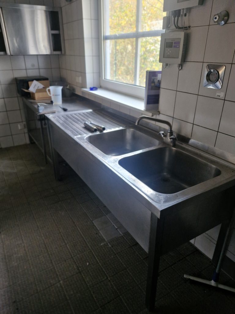 – Edelstahl-Spüle mit zwei Becken