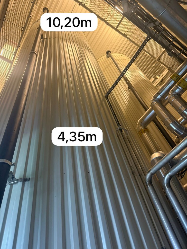 9 Edelstahltanks aus Lebensmittelindustrie 10,2 m Höhe