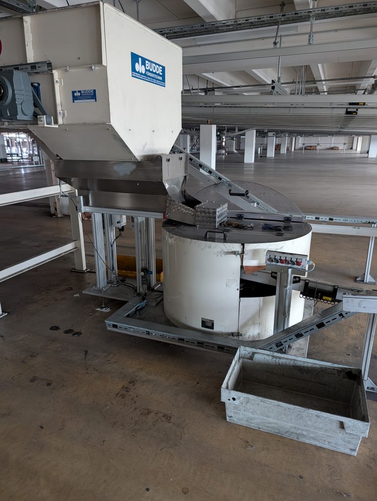Budde Förder- und Puffereinheit mit Bandförderer und Rundtisch GGF 6/1200