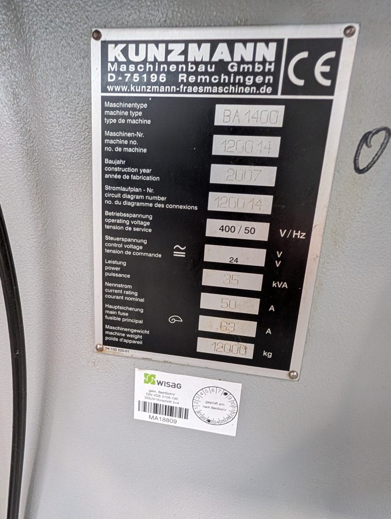 Fresadora CNC de Kunzmann para operaciones de mecanizado exigentes en entornos industriales. Estado: bueno, en funcionamiento.